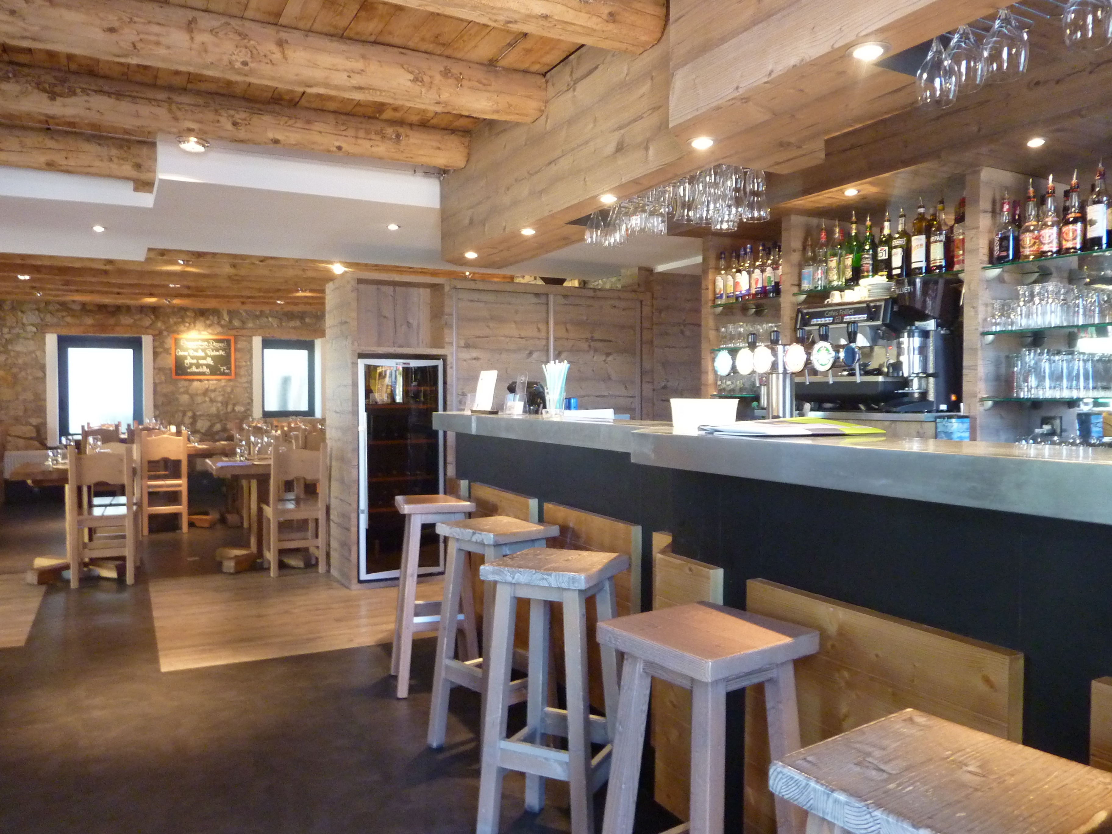 Les travaux ont constitué dans la démolition totale de l’intérieur et de la toiture dans l’agrandissement de l’enveloppe architecturale pour créer une grande salle sur la rue, dans la reconstruction du restaurant et dans la réalisation d’une deuxième entrée et de 2 appartements imbriqués en duplex.