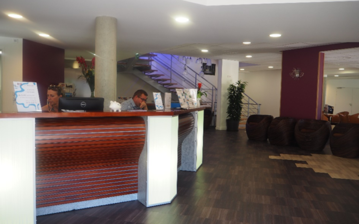 L’enjeu principal était de reconstruire avec un peu moins de surface l’ensemble des services sans perdre de confort. Ceci a pu être réalisé en distribuant les espaces sur 3 niveaux au lieu de deux dans le bâtiment démoli. La contrainte de conserver l’ancienne hauteur de faîtage a rendu délicat la volonté architecturale de liberté et de hauteur. La multiplication des escaliers, le passage fréquent de l’intérieur à l’extérieur par et avec des terrasses a donné cette fluidité. Un effort particulier a été fait sur les agencements (Bar et banque d’accueil notamment) et sur le traitement de la lumière électrique. Le type de luminaires, l’emplacement des éclairages ponctuels, le traitement coloré complémentaire apporte beaucoup à ces volumes ayant peu de hauteur.